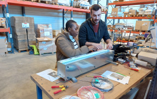 Les équipes de production Lagazel formées au montage de la station de charge USB Boumba